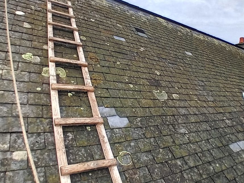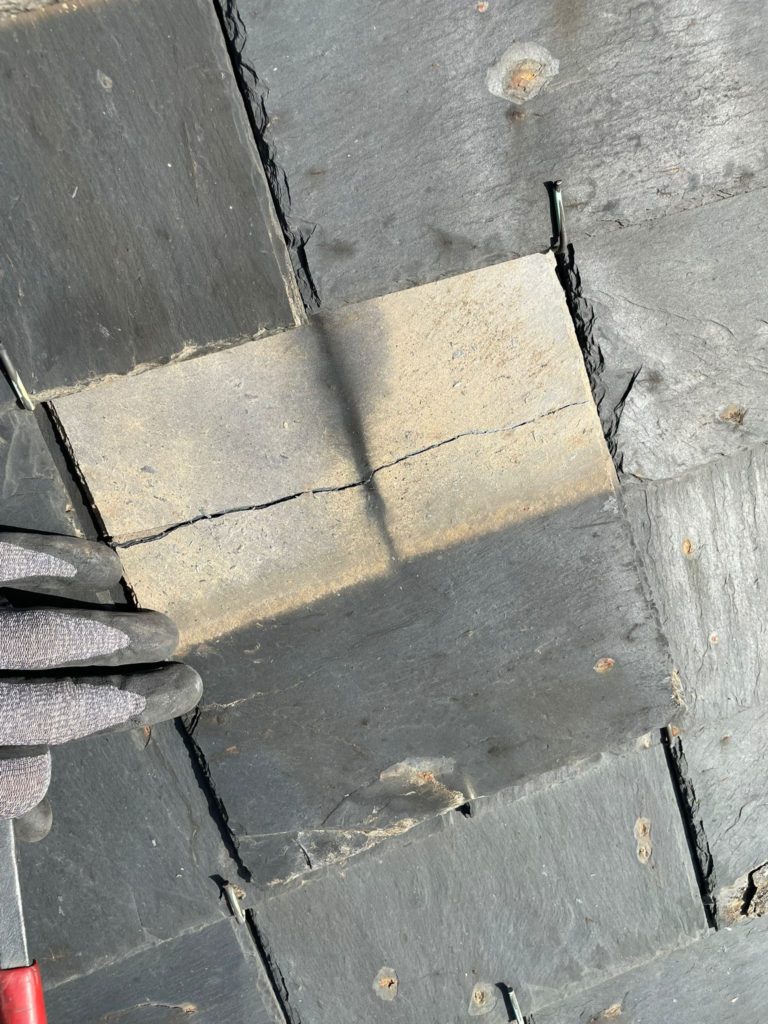 - Qualité de l’ardoise (porosité, usure, fissures). Les matériaux de couverture eux-mêmes donnent de précieux indices : Ardoises poreuses ou qui se désagrègent, fissures longitudinales. Ces signes indiquent que la couverture ne remplit plus correctement son rôle d’étanchéité et laisse potentiellement entrer l’eau. Info importante : Une ardoise trop usée ou qui absorbe l’eau doit souvent être remplacée, car elle ne protégera plus efficacement la maison.